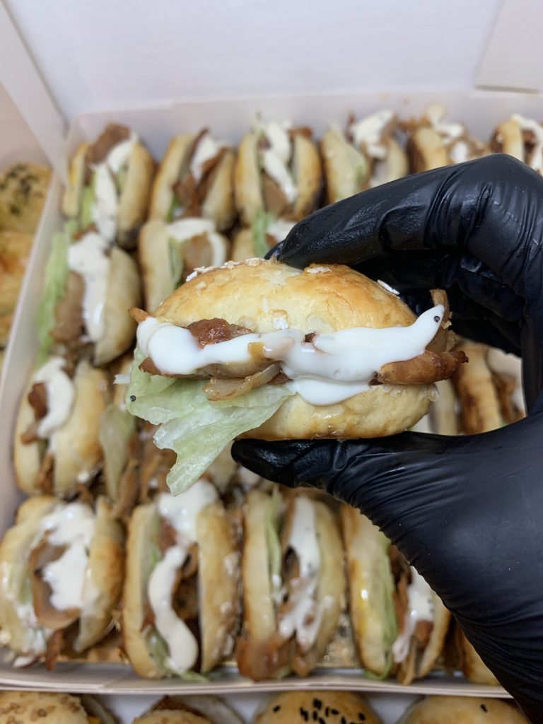 Pain navette, Viande Kebab, Sauce Pita, Salade, Oignons Rouges