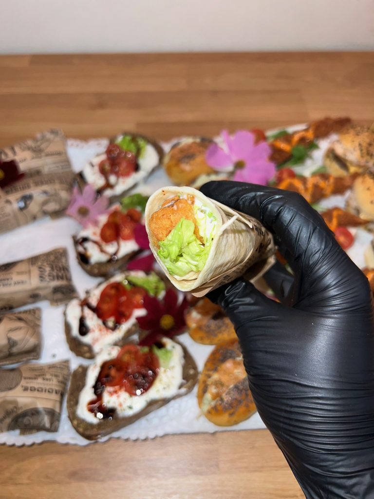 Wrap, Poulet Pané, Cheddar, Sauce Pita, Salade, Oignon Frits