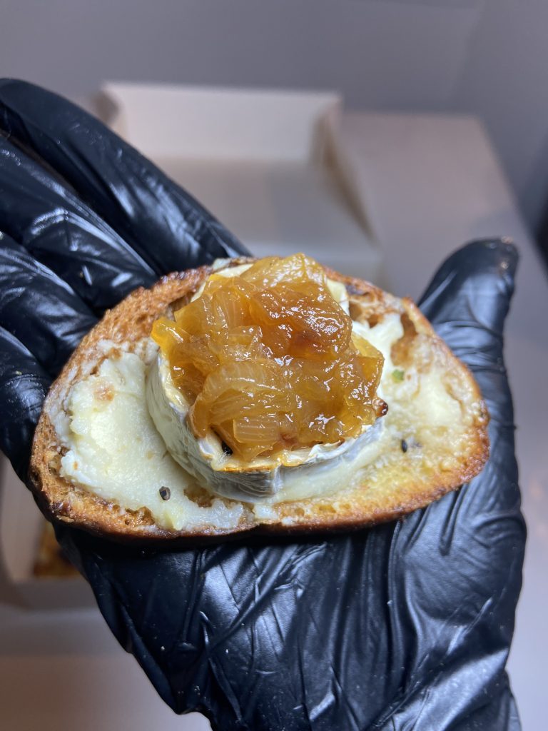 Pain Grillé, Fromage de Chèvre, Miel, Oignon Confit Maison